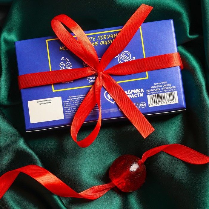 Леденец-кляп «Любовь это» со вкусом клубники со сливками.