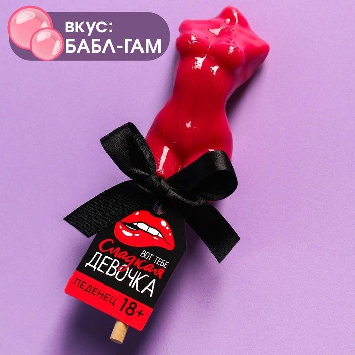 Леденец на палочке «Сладкая девочка» со вкусом бабл-гам.
