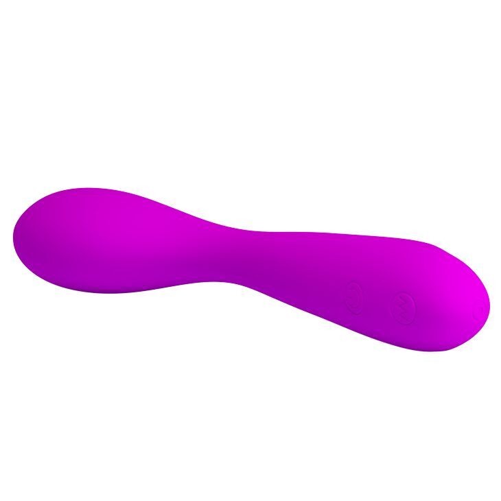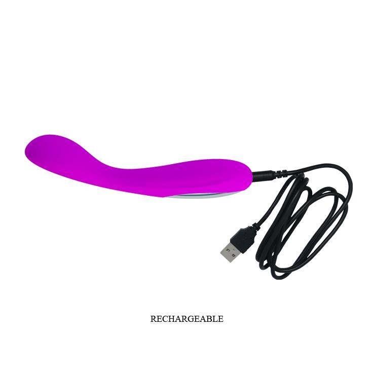Лиловый силиконовый перезаряжаемый вибромассажёр Nigel. Изогнутая форма идеальна для массажа точки G. 30 функций вибрации.