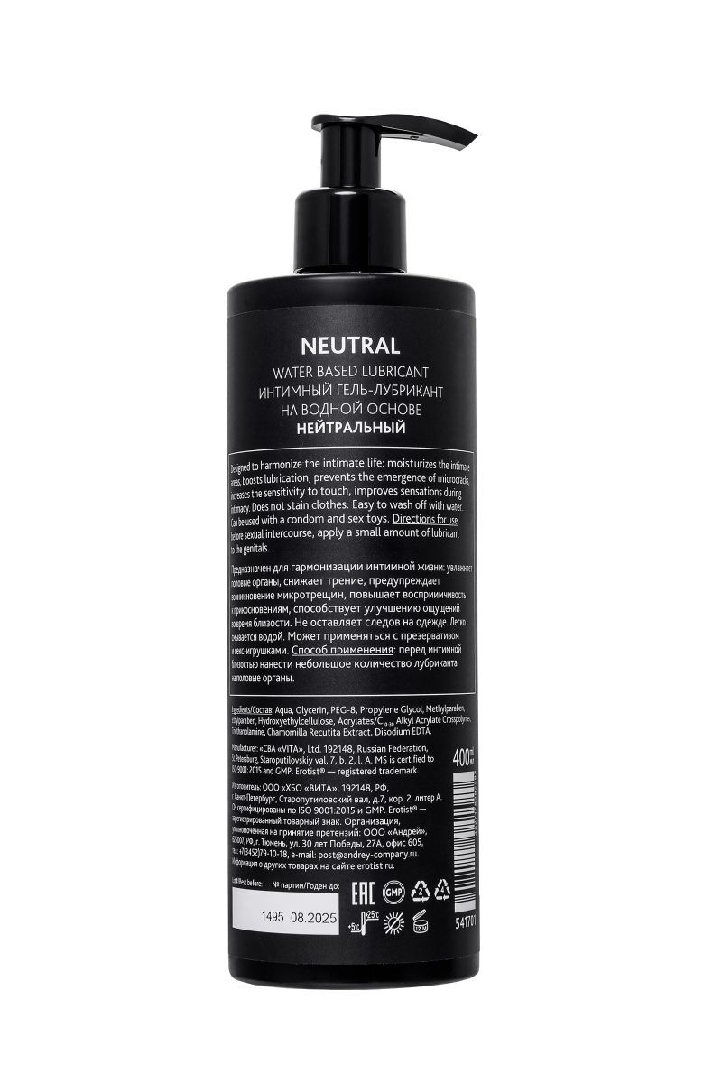 Лубрикант на водной основе Erotist Neutral - 400 мл.
