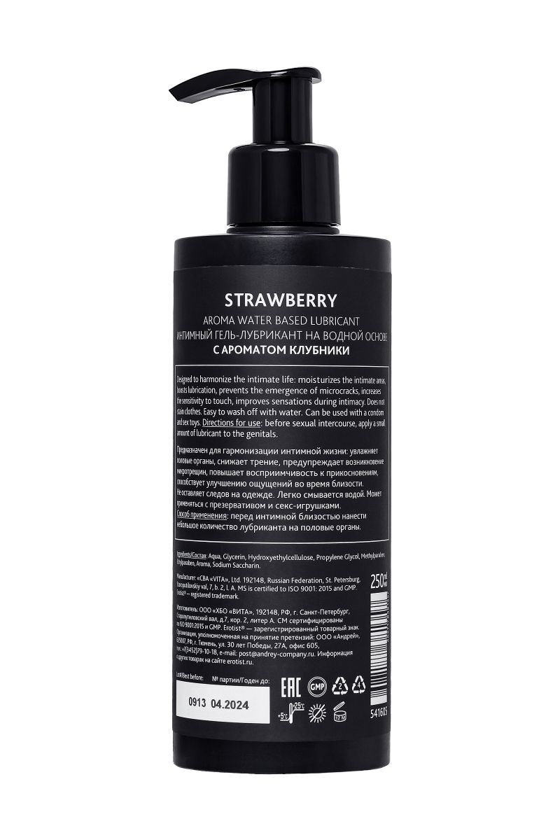 Для любителей сладкой спелой клубнички, лакомиться которой можно круглый год, изобретен потрясающий клубничный лубрикант на водной основе Erotist Strawberry. Всё, что понадобится для приготовления вкусной интимной встречи, так это пара капель этого лубриканта и щепотка пикантных фантазий. Смешиваем и наслаждаемся! Такой десерт понравится не только сладкоежкам… Лубрикант Erotist Strawberry имеет водную основу, гипоаллергенен, совместим с презервативами, не оставляет следов и легко смывается водой. Не съедобен.