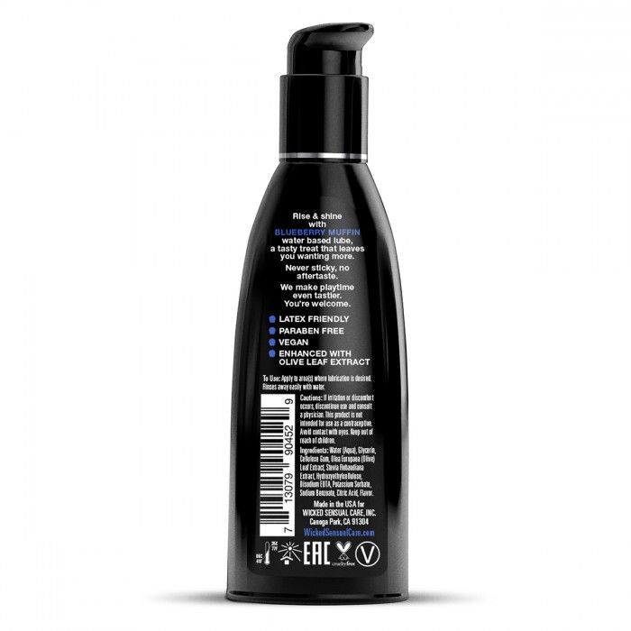 Изысканный лубрикант на водной основе с классическим американским вкусом - маффин с черникой, для изумительных эротических ласк. При производстве Wicked не используется сахар, сладость придает выжимка из растения стевия, благодаря чему лубрикант не оставляет послевкусия, не липнет и дарит удивительное ощущение скольжения. В составе лубриканта есть экстракт оливкового листа, который является природным обеззараживающим средством, мягкая формула подходит даже для чувствительной кожи. Удобная упаковка с помпой поможет насладиться моментом близости в полной мере. Не содержит парабенов, безвреден для латекса.