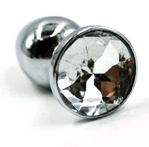 Малая анальная пробка из алюминия с прозрачным кристаллом - 7 см.