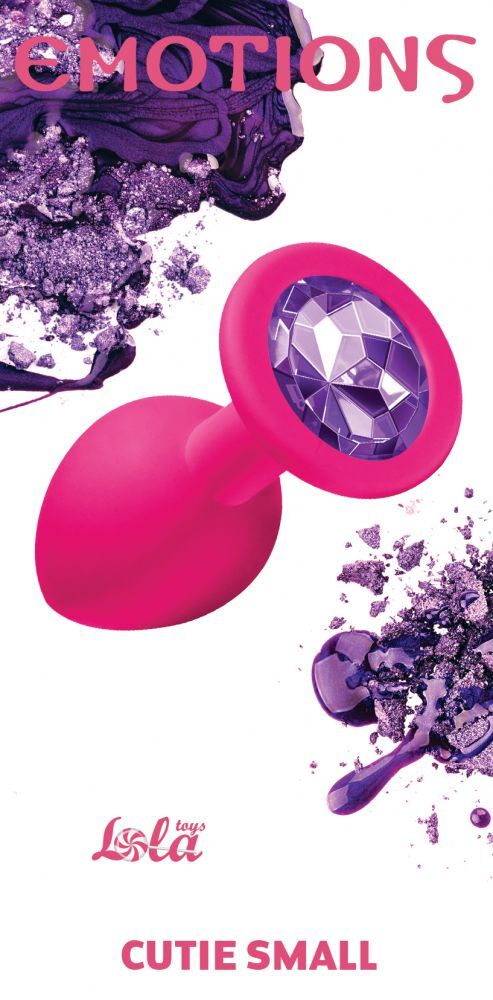 Малая розовая анальная пробка Emotions Cutie Small с фиолетовым кристаллом - 7,5 см.
