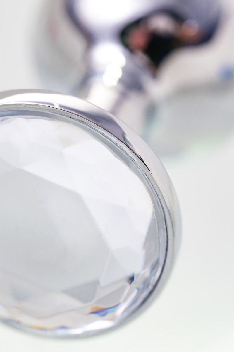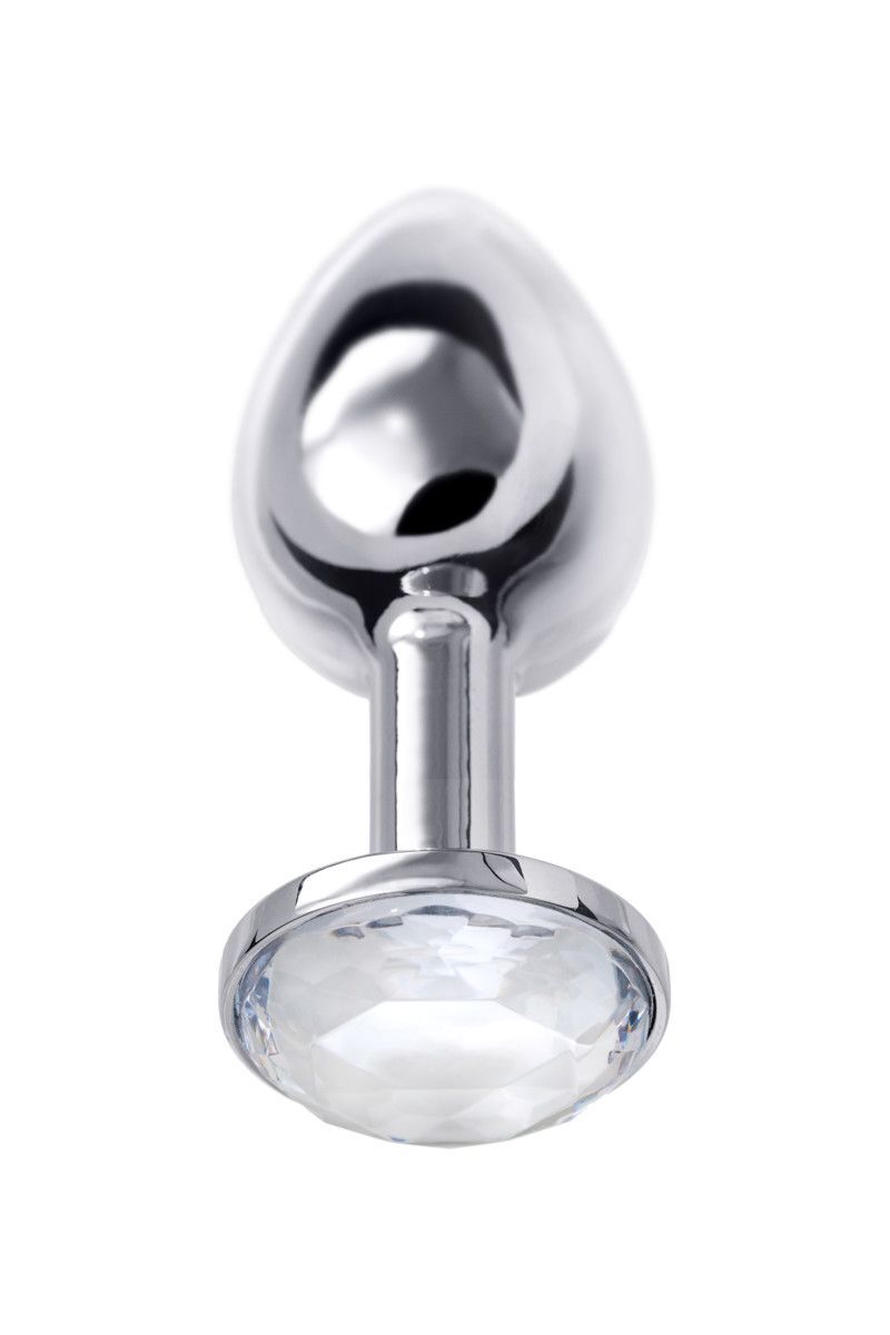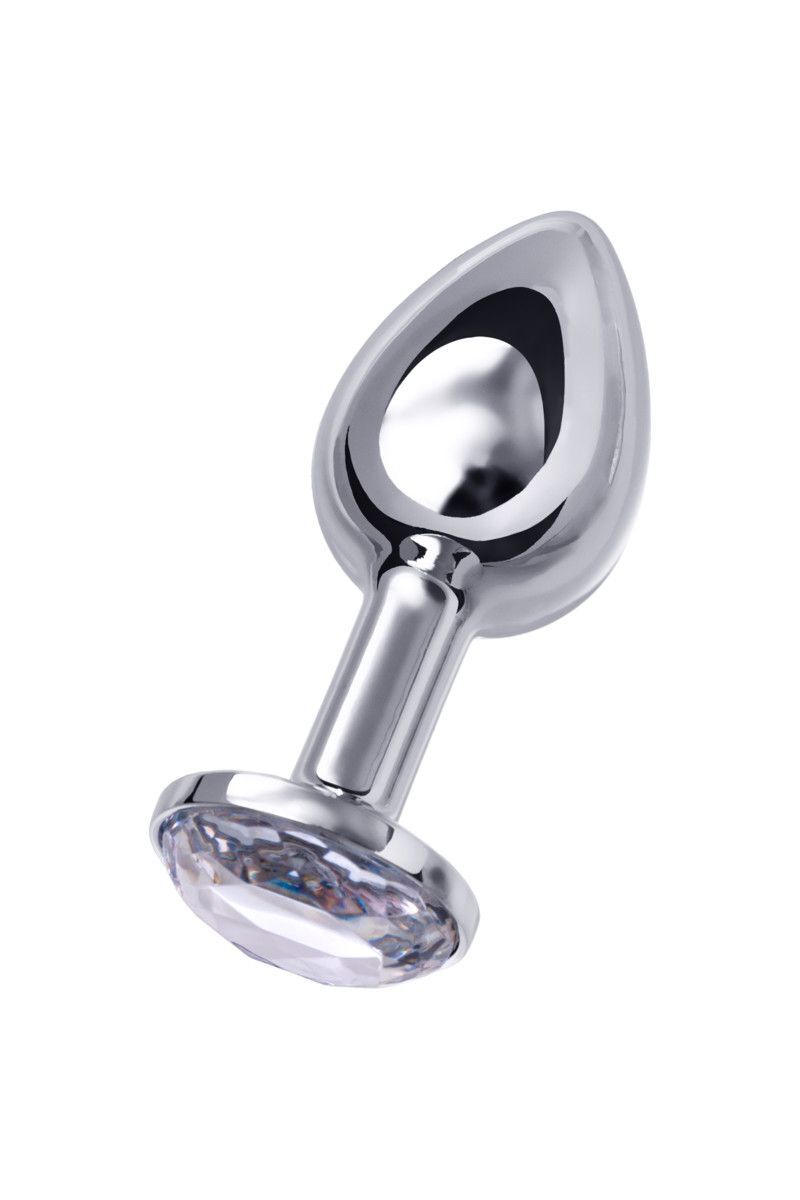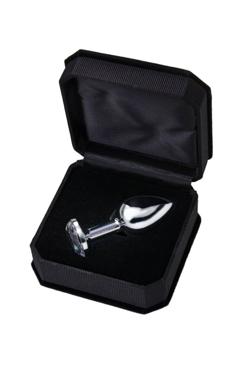 Малая серебристая анальная втулка с прозрачным кристаллом. Поставляется в подарочной упаковке.
