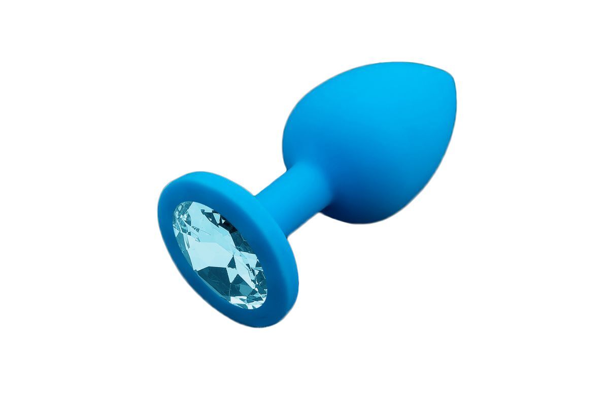Маленькая голубая силиконовая пробка с голубым кристаллом - 7,5 см.