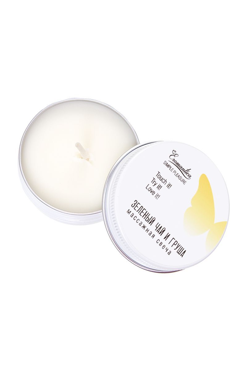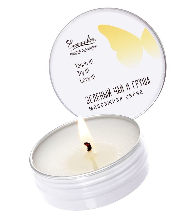 Коллекция косметики для массажа Eromantica Simple Pleasure — это натуральные массажные масла в удобном формате. С ними ты можешь создавать романтическую атмосферу и наслаждаться роскошным уходом в любом месте и в любое время. Массажная свеча Eromantica «Зеленый чай и груша» — релакс и уход в удобном формате. Как использовать: зажги свечу. Через 5-7 минут погаси ее и нанеси образовавшееся масло на тело легкими массажными движениями.