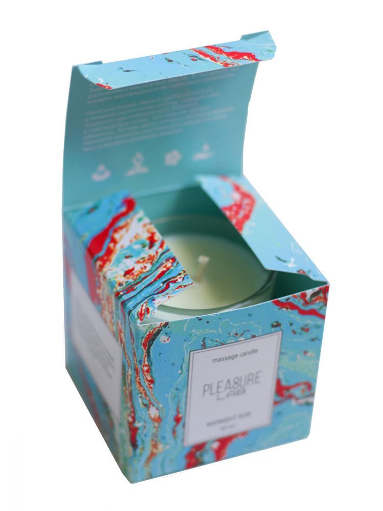 Массажная свеча Pleasure Lab - прекрасный проводник от легких заигрываний до страстного секса. За счет приятного аромата свеча дарит ароматерапевтический эффект, позволяет расслабиться и создать интимную атмосферу. Свеча Midnight sun обладает освежающим и бодрящим ароматом с интенсивными нотами инжира. В состав свечей входят органические компоненты: натуральный соевый воск, натуральные масла: ши (карите), миндальное, кунжутное, виноградных косточек, ароматическая композиция и хлопковый фитиль. Способ применения: зажгите свечу и подождите 5-10 минут, пока расплавятся массажные масла. В это время вы можете наслаждаться её чудесным ароматом. Погасите пламя свечи и дайте ей остыть в течение нескольких секунд. Соевый воск плавится при температуре, близкой к температуре кожи, поэтому им нельзя обжечься. Теперь свеча готова к использованию. Нанесите немного растаявшего масла на руки, тело и можете начинать массаж. Время горения - 5,5 часов.
