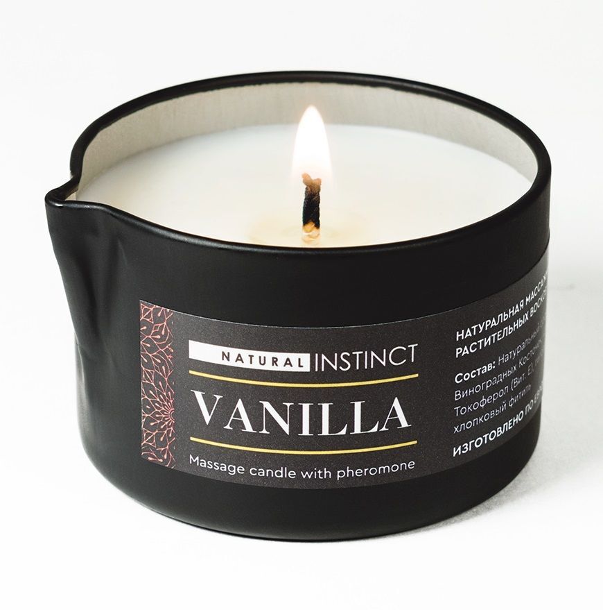 Массажная свеча с феромонами Natural Instinct VANILLA (ваниль). Массажная свеча питает, увлажняет, смягчает и защищает кожу от вредного воздействия окружающей среды, повышает ее эластичность, предотвращает преждевременное старение кожи и появление морщинок, а также образует на коже защитную пленку. Можно использовать для массажа или в качестве увлажняющего крема.