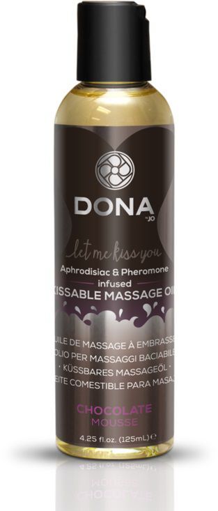 Массажное масло DONA Kissable Massage Oil Chocolate Mousse с ароматом шоколадного мусса. Эротический массаж с маслом - это изысканный десерт на двоих. Расслабляйтесь и наслаждайтесь моментом удовольствия. Сбалансированная натуральная масляная основа и комплекс витаминов - Е, А, С, D позаботятся о нежной коже, делая её сияющей, ухоженной, гладкой и шелковистой. Нежирная и длительная формула - увлажняют и омолаживают кожу. Феромон снимает внутреннее напряжение, улучшает настроение и провоцирует сексуальное возбуждение. Продемонстрируй свою силу любви чувственными поглаживаниями, растираниями, шлепками или соблазнительными поцелуями, воздействуя на вкусовые рецепторы страсти.