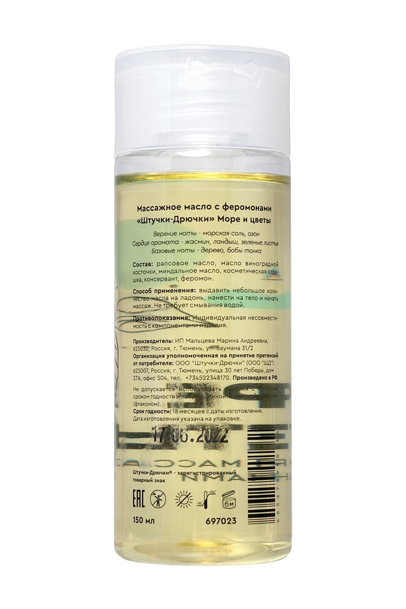 Расскажите о своих чувствах с помощью прикосновений – нежных и легких или страстных и интенсивных. Массажное масло с феромонами Море и цветы пробуждает сексуальное желание, снимает усталость и дарит прилив сил для эротического продолжения. Тонкий древесный аромат с нотами жасмина и ландыша располагает к расслаблению, а природный феромон в составе масла, попадая на кожу, пробуждает желание на уровне инстинктов. Ощутите как легко скользят ладони по телу, ведь натуральные масла миндаля и виноградной косточки увлажняют и питают кожу без ощущения жирности и липкости. Чувственный массаж – лучшее решение для романтического вечера, перетекающего в ночь страсти. Верхние ноты – морская соль, озон. Сердце аромата – жасмин, ландыш, зеленые листья. Базовые ноты – дерево, бобы тонка.