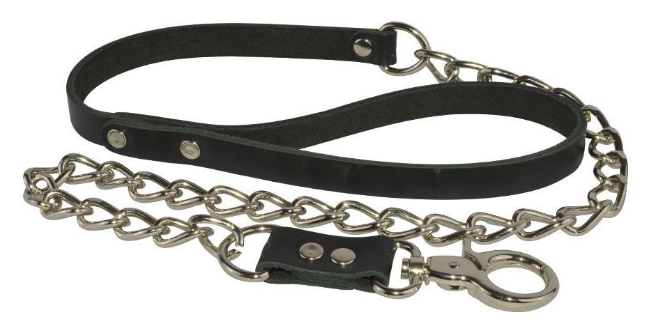 Массивный поводок-цепочка для ошейника. Ремешок изготовлен из натуральной кожи.