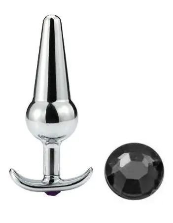 Металлическая анальная пробка-якорь с черным кристаллом - 11 см.