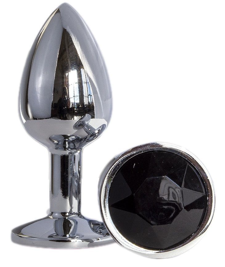 Металлическая анальная втулка с черным кристаллом - 7,2 см.