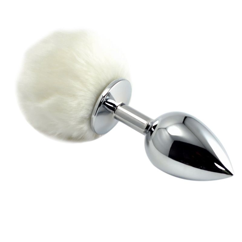 Металлическая пробка с белым хвостом Задорный Кролик - 11 см.