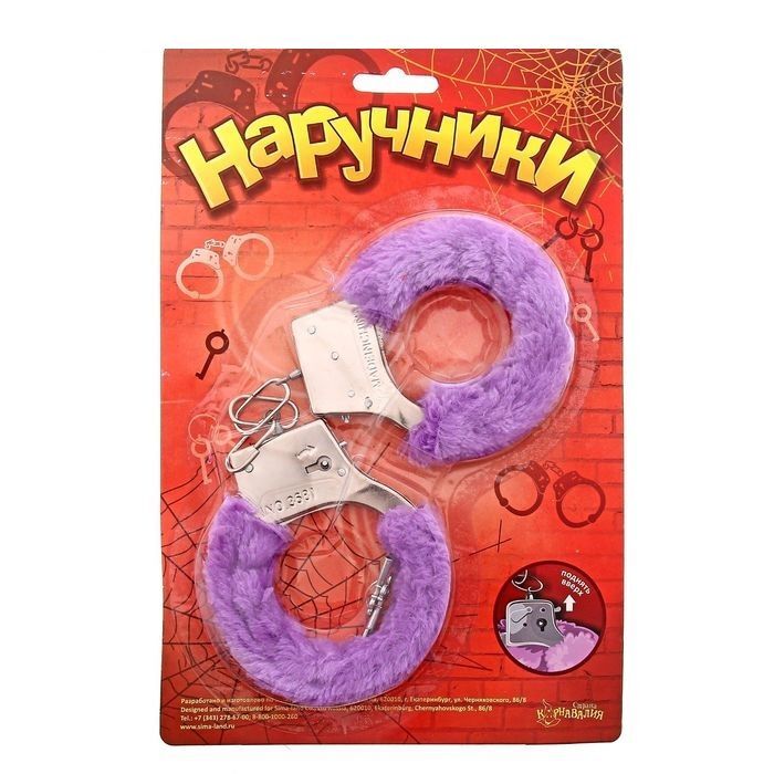 Металлические наручники с фиолетовым плюшевым мехом.