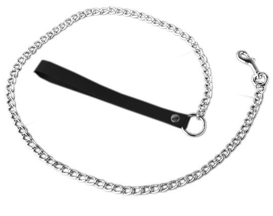 Поводок представляет собой металлическую цепь. Поводок снабжён удобной для захвата кожаной ручкой. Длина цепи - 80 см.
