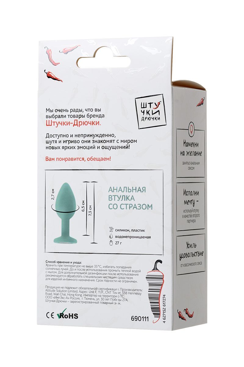 Штучка для другого входа. Подготовка к анальному сексу. Яркий аксессуар. Небольшой размер, нежный материал и каплевидная форма втулки позволяют ей уверенно, но деликатно превратить подготовку к анальному сексу в возбуждающую игру. А сияющий кристалл в основании сделает намек на другой секс очень соблазнительным. Втулка подойдёт даже самым-самым смущающимся и пугающимся новичкам - она обеспечивает комфортное проникновение и деликатную стимуляцию. Ни одна из обычных секс-игрушек не будет так дразняще смотреться во время прелюдии или секса. Рабочая длина - 6,5 см.
