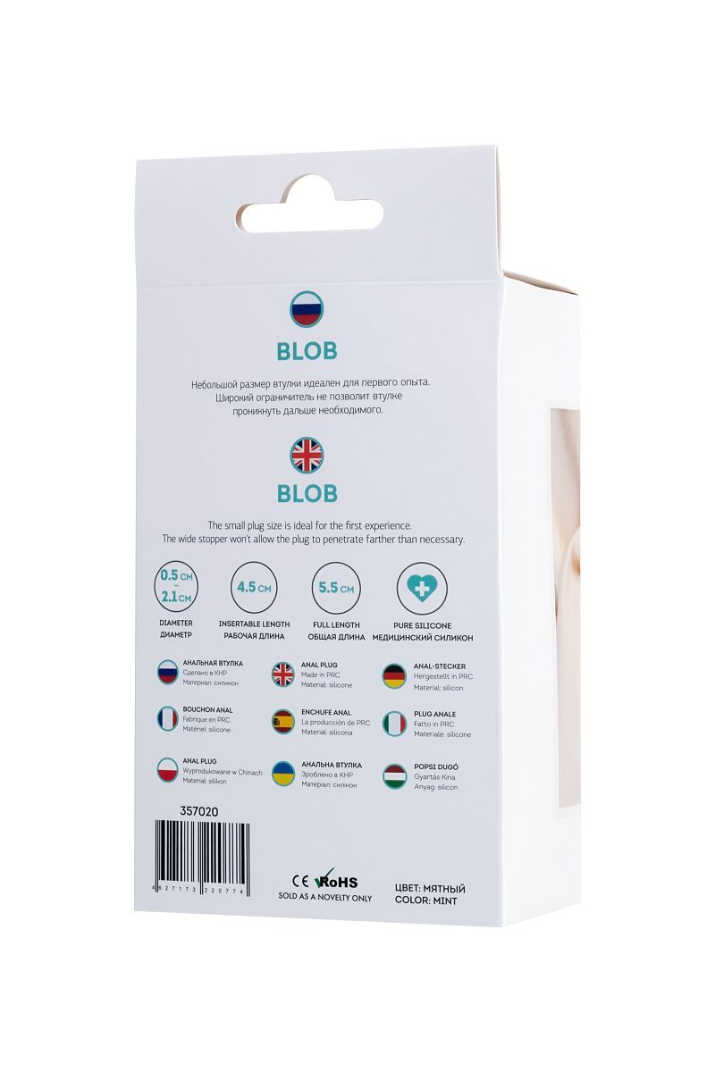 Анальная втулка Blob. Небольшой размер втулки идеален для первого опыта. Широкий ограничитель не позволит втулке проникнуть дальше необходимого. Рабочая длина - 4,5 см.