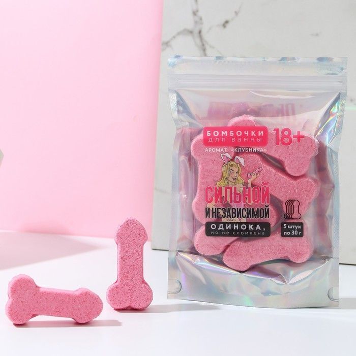 Набор бомбочек для ванны с ароматом клубники «Сильной и независимой». В упаковке 5 бомбочек по 30 гр. каждая.
