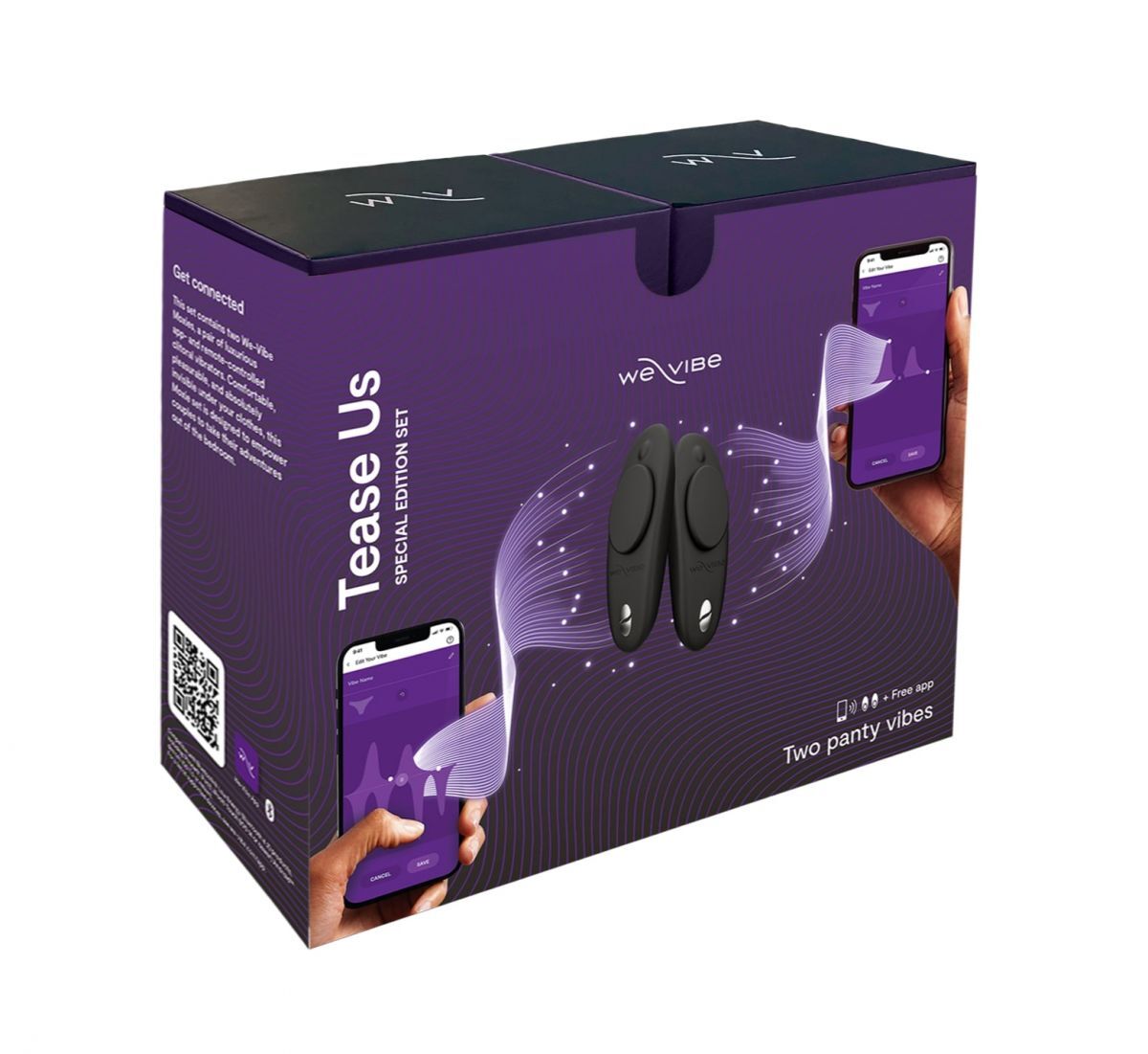 Набор We-Vibe Tease Us Moxie + Moxie - набор для самых смелых и раскрепощённых женщин. We-Vibe Moxie - инновационный компактный и удобный стимулятор в трусики. Игрушка имеет возможность создания уникальных «плейлистов» вибрации и управления на любом расстоянии из любой точки мира. Вибромассажер выполнен из высококачественного безопасного силикона, не содержащего фталатов, бисфенола А и латекса. Все моторы We-Vibe уникальны и работают на низких частотах, создавая глубинную вибрацию. Это делает воздействие на эрогенные зоны интенсивным и при этом очень мягким. Вне зависимости от выбранной мощности вибромассажер остается очень тихим, что дает возможность пользоваться им везде, где появляется желание. Больше не требуется никаких дополнительных приспособлений и кармашков, вибромассажер надежно удерживается на месте с помощью магнитного зажима. Каждый изгиб игрушки тщательно продуман для максимального комфорта и удовольствия. We-Vibe Moxie может управляться самостоятельно с помощью кнопок на ручке, с помощью входящего в комплект пульта или специализированной программы We-Connect. Программа позволяет создать уникальные «плейлисты» вибрации и дает возможность управления на любом расстоянии из любой точки мира. Помимо этого вибромассажер имеет 10 режимов вибраций. Радиус работы пульта - 3 метра, радиус работы приложения - весь мир! Защищенное соединение Bluetooth обеспечивает повышенную безопасность, предотвращающую другие сигналы и обеспечивающую надежность вашего коннекта. Вибромассажер имеет USB зарядку и может быть подключен практически в любом месте. Просто подсоедините идущий в комплекте шнур к совместимому порту компьютера или USB-адаптера (приобретается отдельно), а противоположный конец к разъему у основания. Полная зарядка занимает всего 90 минут, ее достаточно для беспрерывной работы в течение 180 минут.