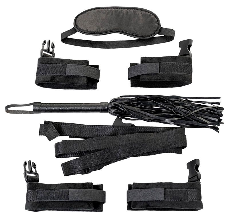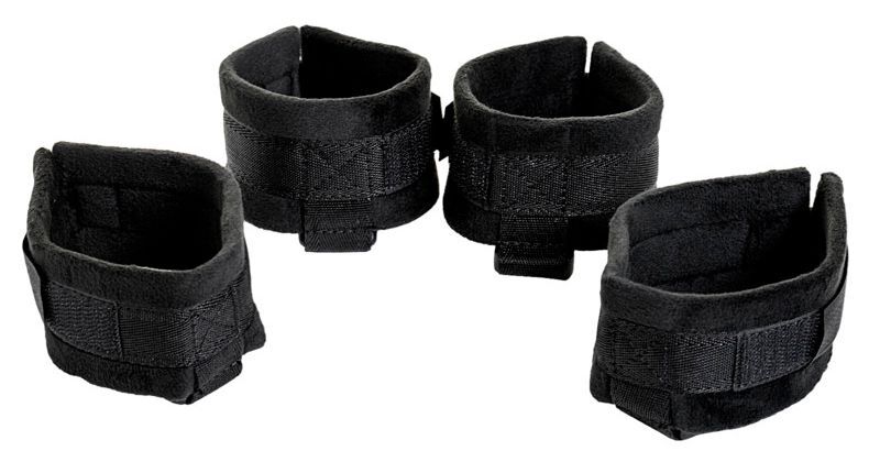 Набор из 4 ремней, фиксирующих руки и ноги вашего пертнера с помощью наручников и оков с мягким ворсом. Зафиксируйте партнера в любом положении на кровати, у двери или другом месте по вашему выбору. Только вы и ваши фантазии определяют, как вы используете этот комплект и какое удовольсвие получите со своим парнером. В комплекте: ремни, плетка, наручники, оковы и маска