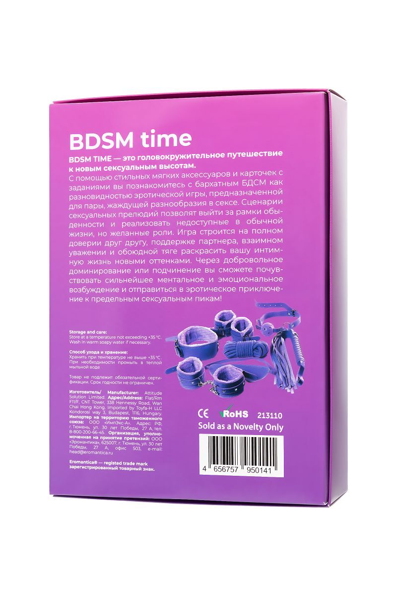 BDSM TIME – это головокружительное путешествие к новым сексуальным высотам. С помощью стильных мягких аксессуаров и карточек с заданиями вы познакомитесь с бархатным БДСМ как разновидностью эротической игры, предназначенной для пары, жаждущей разнообразия в сексе. Сценарии сексуальных прелюдий позволят выйти за рамки обыденности и реализовать недоступные в обычной жизни, но желанные роли. Игра строится на полном доверии друг другу, поддержке партнёра, взаимном уважении и обоюдной тяге раскрасить вашу интимную жизнь новыми красками. Через добровольное доминирование или подчинение вы сможете почувствовать сильнейшее ментальное и эмоциональное возбуждение и отправиться в эротическое приключение к предельным сексуальным пикам! В комплекте: контракт, 30 карт, наручники, кляп, плеть, маска, ошейник с поводком, оковы, веревка.