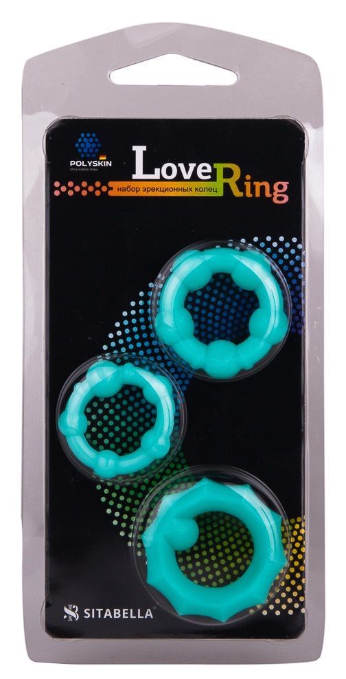 Набор из 3 бирюзовых рельефных эрекционных колец