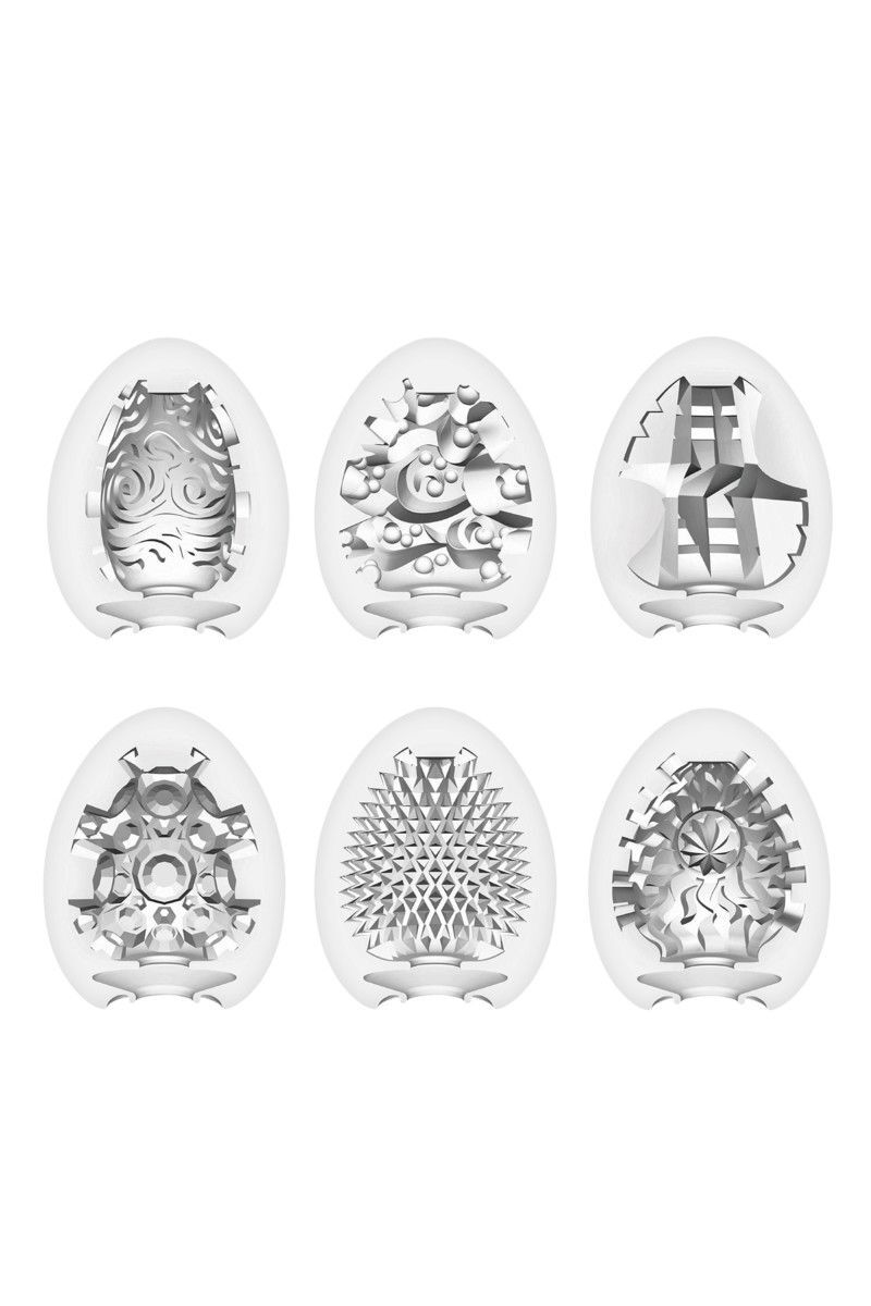 В прозрачной пластиковой упаковке этого набора полдюжины яиц, но не простых, а волшебных. Под каждой пластиковой скорлупкой – нежное содержимое, способное экстремально растягиваться и покрывать собой, как второй кожей, ваш член снизу доверху. Между собой они отличаются лишь внутренним рельефом: шипики у Misty, молнии у Thunder, кратеры у Crater, завихрения у Cloudy, лучики у Shiny и волны у Surfer. Выбирайте любое, чтобы погрузиться… и в смазанное лубрикантом яйцо, и в удовольствие!
