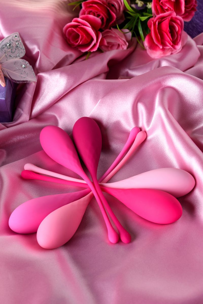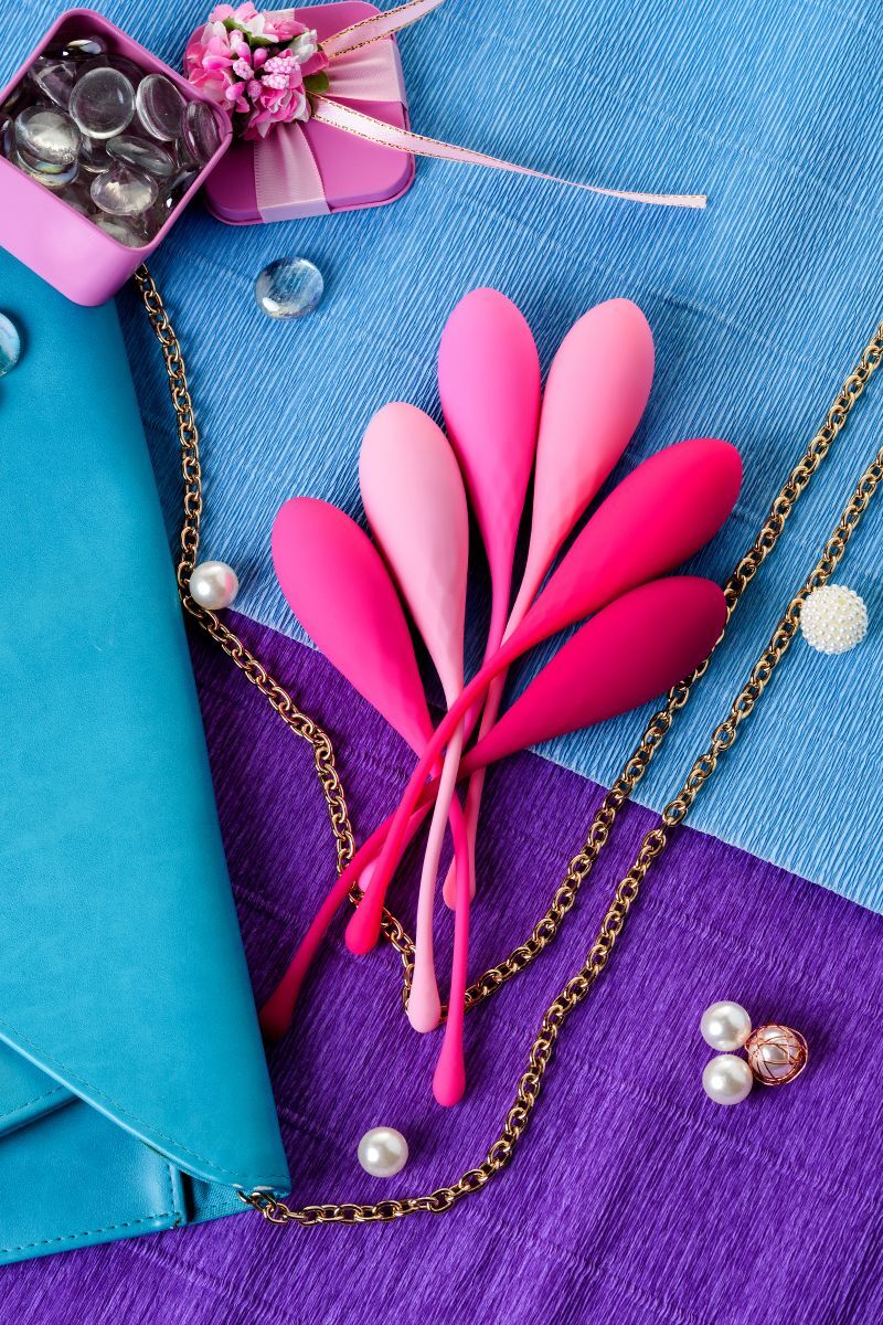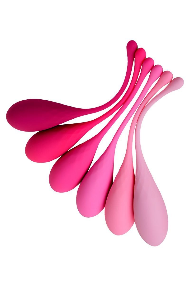 6 вариантов веса для увеличения нагрузки. Бархатистый силикон высшего качества. Идеально выверенная эргономичная форма. Этот набор может стать «идеальным тренером» твоей красоты и здоровья, ведь он подойдёт каждой женщине. Целых 6 вариантов веса – для постепенного увеличения нагрузки, каплевидная форма и мягкий «хвостик» – для удобного размещения и извлечения тренажера, и все это в удобной и безопасной коробке. Стильный дизайн, мягкие оттенки розового и нежность силикона сделают заботу о твоем интимном здоровье элегантной и приятной. Рабочая длина - 8 см. Вес шариков - 50, 65, 80, 95, 110 и 130 гр.