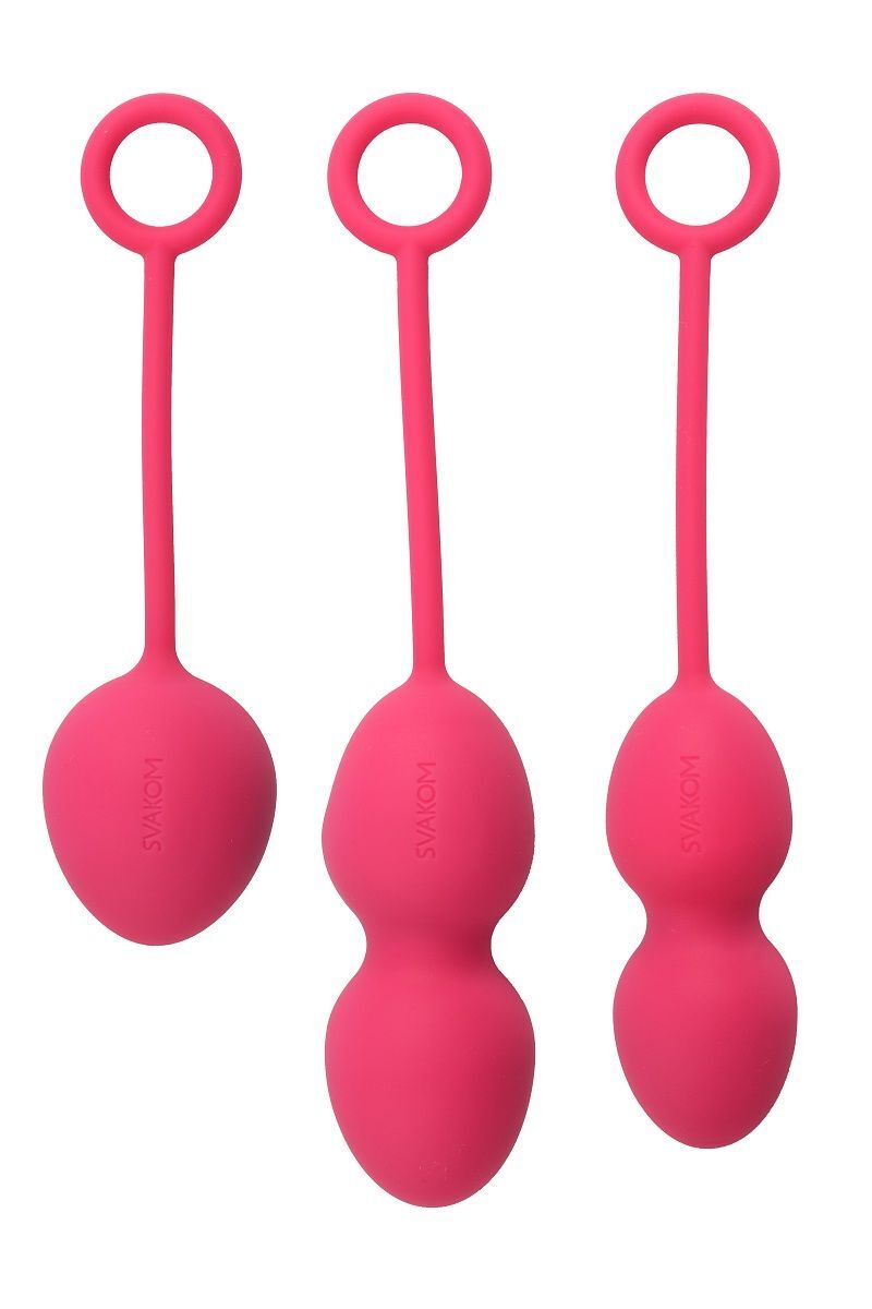 В этом наборе цвета мякоти сливы есть всё необходимое для выполнения упражнений Кегеля. Три вида вагинальных шариков, отличающихся друг от друга количеством и размером звеньев, помогут вернуть мышечной стенке вагины силу и упругость. Прелесть этого набора в том, что вы можете подобрать тренажёр для ситуации здесь и сейчас. Предстоит пробежка? Можно взять одиночный шар. Работа такая, что весь день придётся провести на ногах? Тогда удобнее будут двойные шарики малого размера. Бархатистая и идеально гладкая поверхность из медицинского силикона способствует лёгкому введению стимуляторов и комфортному ношению. Длинные мягкие хвостики с колечком помогут извлечь тренажёр из лона после выполнения всех упражнений. Длина одиночного шарика - 13,5 см., диаметр - 3,6 см, вес - 49 гр. Длина малых двойных шариков - 16,2 см., диаметр - 2,8 см, вес - 95 гр. Длина больших двойных шариков - 17 см., диаметр - 3,2 см, вес - 75 гр.