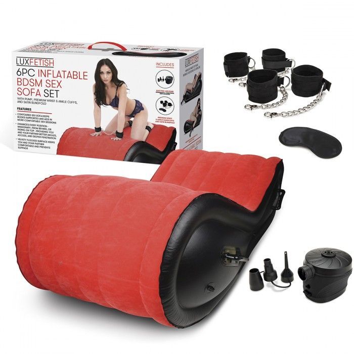 Надувная секс-софа для БДСМ-игр включает в себя все, что вам нужно, чтобы улучшить сексуальную парную игру с элементами бондажа. А также это просто универсальный предмет мебели, который позволит вам попробовать секс в новых захватывающих позах. Эта надувная кровать, выполненная в классической эротической цветовой комбинации красного и черного, она манит вас своей бархатистой мягкой поверхностью и своими чувственными изгибами, изготовлена из прочного ПВХ и покрыта бархатистым материалом для комфорта. Получите удовольствие от экспериментов с прилагаемыми манжетами для запястий и щиколоток. Простые в использовании манжеты удобны для новичков и являются идеальным введением в мир БДСМ-игр. С комфортом передайте контроль за ситуацией. Лежа и расслабляясь, позволяйте своему доминирующему партнеру взять на себя все управление сексуальной игрой, пока вы подчиняетесь его стимулирующим прикосновениям. Софу можно надуть в любой момент, когда наступит сексуальное настроение, а также можно сдуть, когда игра закончится. Помимо фиксаторов для запястий и щиколоток в комплекте к софе предлагается черная маска и насос. вес 4,670 кг, длина 51 см, ширина 18 см, высота 31 см