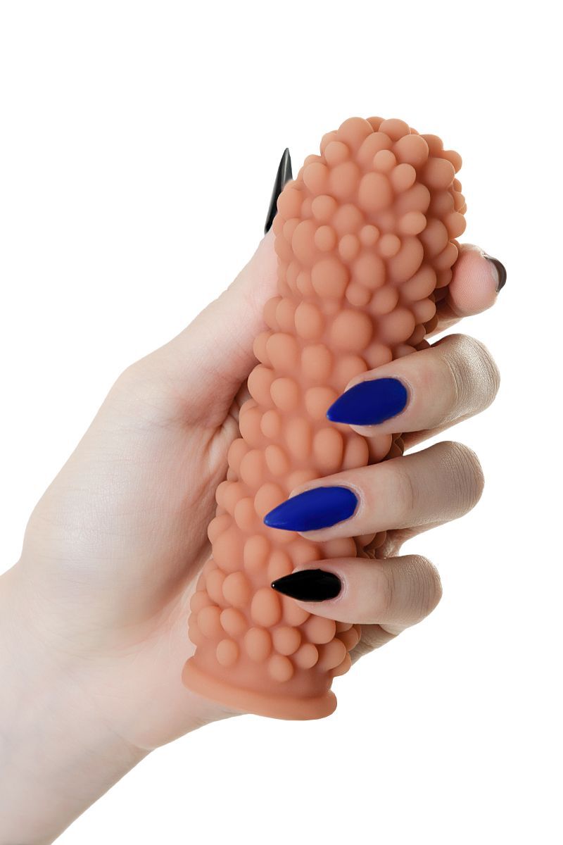 Увеличивающая насадка с впечатляющей дополнительной стимуляцией решает сразу 3 задачи: дарит удовольствие обоим партнерам, позволяет экспериментировать с секс-игрушками и выводит интимную жизнь на более высокий уровень Желанное разнообразие. Насадка придает члену внушительный объем и новую форму, поэтому как нельзя лучше подходит для сценариев - секс с незнакомцем. При этом выразительный рельеф с выпуклыми точками и шипами привносит незабываемый эффект новизны в ощущения партнерши. Зашкаливающее удовольствие для двоих. В то время как женщина испытывает потрясающее чувство наполненности и получает интенсивную стимуляцию стенок влагалища, мужчина наслаждается более продолжительным половым актом и возбуждающими оргазмами партнерши. Яркие эксперименты. Киберкожа прекрасно передает всю мощность вибраций, поэтому насадку можно использовать не только с партнером, но и с любимым вибратором. Вы также оцените , как насадка превосходно тянется и легко надевается на член, обеспечивая при этом плотное и комфортное прилегание, как быстро принимает температуру тела и насколько она приятна на ощупь.