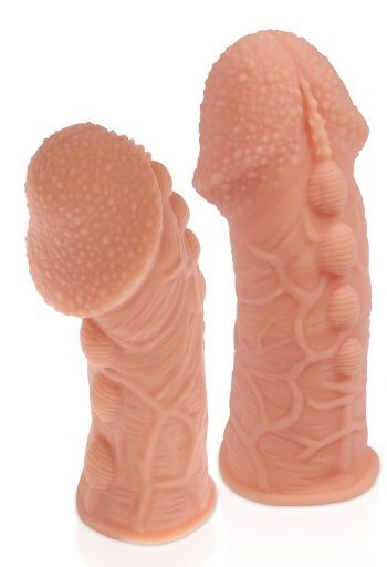 Насадка на фаллос с пузыриками, венками и ребристостью Extreme Sleeve 009 M-size - 14,7 см.