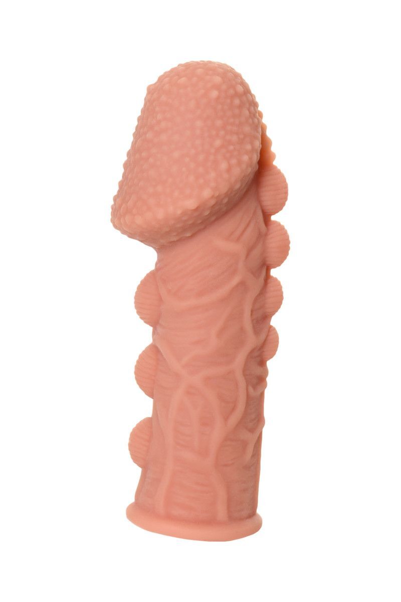 Увеличивающая насадка с впечатляющей дополнительной стимуляцией решает сразу 3 задачи: дарит удовольствие обоим партнерам, позволяет экспериментировать с секс-игрушками и выводит интимную жизнь на более высокий уровень. Желанное разнообразие. Насадка придает члену внушительный объем и новую форму, поэтому как нельзя лучше подходит для сценариев - секс с незнакомцем. При этом рельеф в виде увеличенной текстурированной головки, венок по всей поверхности и выпуклых бугорков, имитирующих пирсинг, привносит незабываемый эффект новизны в ощущения партнерши. Зашкаливающее удовольствие для двоих. В то время как женщина испытывает потрясающее чувство наполненности и получает интенсивную стимуляцию стенок влагалища, мужчина наслаждается более продолжительным половым актом и возбуждающими оргазмами партнерши. Яркие эксперименты. Киберкожа прекрасно передает всю мощность вибраций, поэтому насадку можно использовать не только с партнером, но и с любимым вибратором. Вы также оцените, как насадка превосходно тянется и легко надевается на член, обеспечивая при этом плотное и комфортное прилегание. Как быстро принимает температуру тела и насколько она приятна на ощупь.