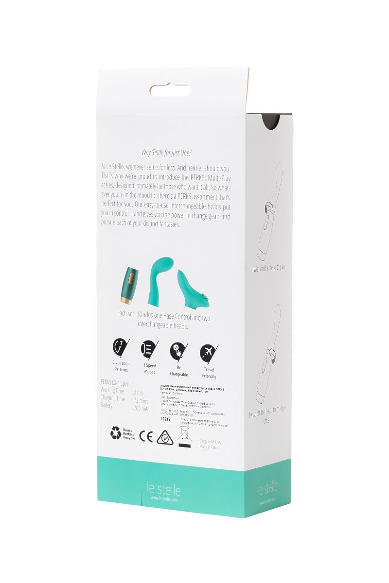 Le Stelle Perks – коллекция для тех, кто не хочет довольствоваться малым. Эргономичный G-Spot вибратор изогнутой формы позволит вам контролировать волны удовольствия и направлять их к самым заветным точкам. Смените насадку, и вы получите клиторальный вибратор, разработанный специально для наружной и точечной стимуляции. Мягкие щетинки из нежнейшего силикона подарят вам неведанные до этого удовольствия. Замена насадки производится парой простых движений, а 7 вариантов вибрации, регулятор скорости и полная водонепроницаемость сделают ваши оргазмы еще ярче.