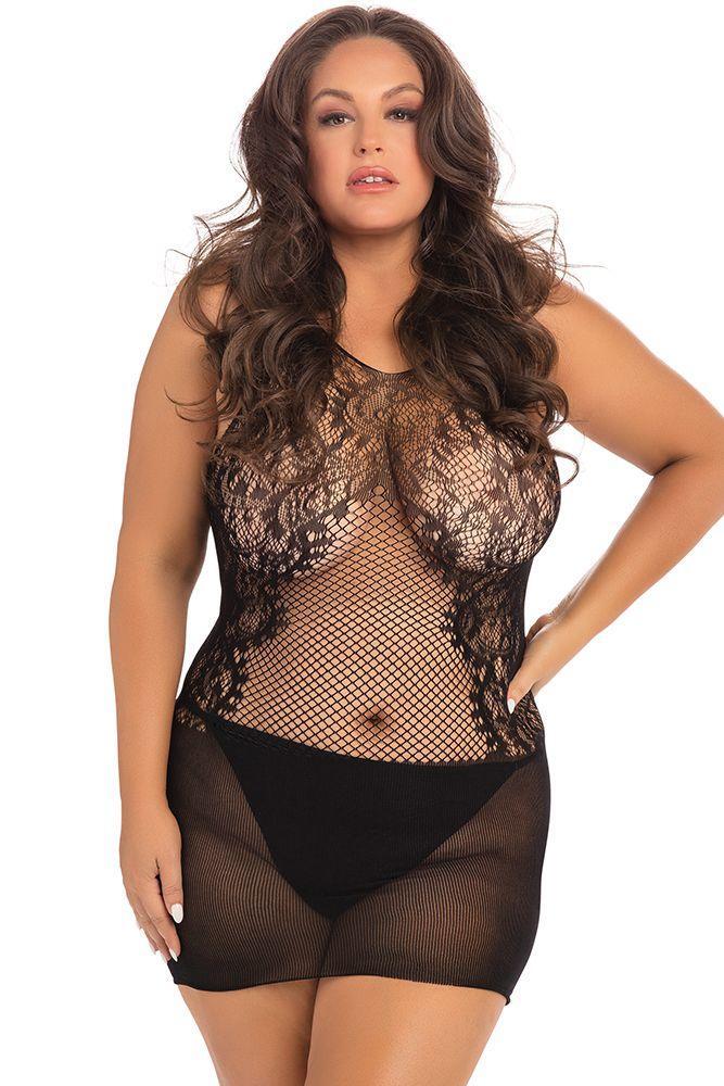 Эротическое мини-платье c уплотненной юбкой и прозрачным лифом в сетку, декорированным цветочным орнаментом. Трусики в комплект не входят!