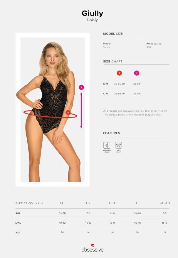 Чувственное боди Giully из полупрозрачного тюля с леопардовым бархатистым узором. Лиф мягкий без косточек, украшен серебристым кулоном. Регулируемые бретели на спине создают геометрическую комбинацию в сочетании с эластичными стрэпами. Боди упаковано в плотную красивую коробку и отлично подойдет в качестве оригинального подарка.