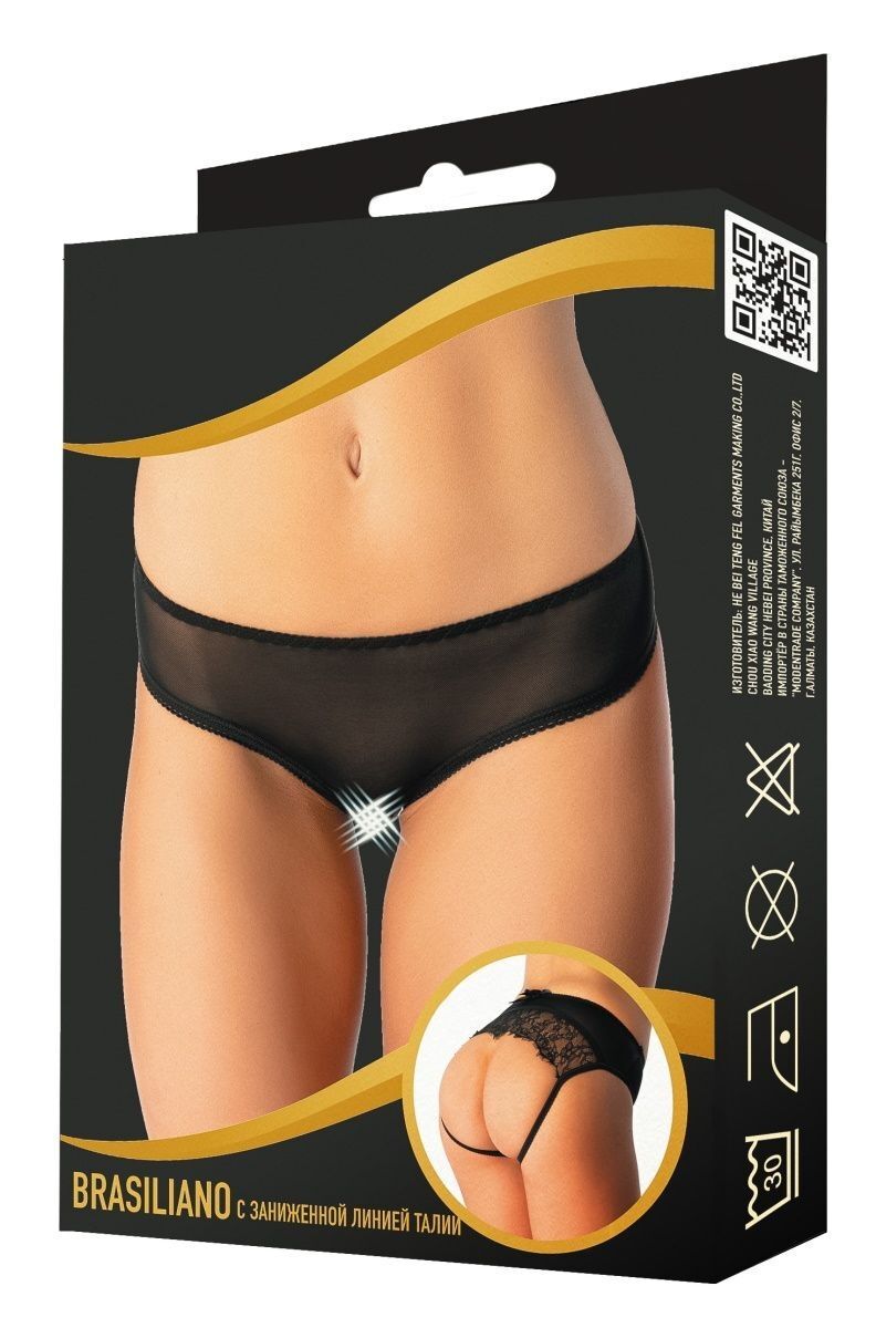 Кружевные трусики-бразилиана с заниженной линией талии. И интимным доступом. Спереди - гладкие, позади кокетливый бантик и кружевные вставки.