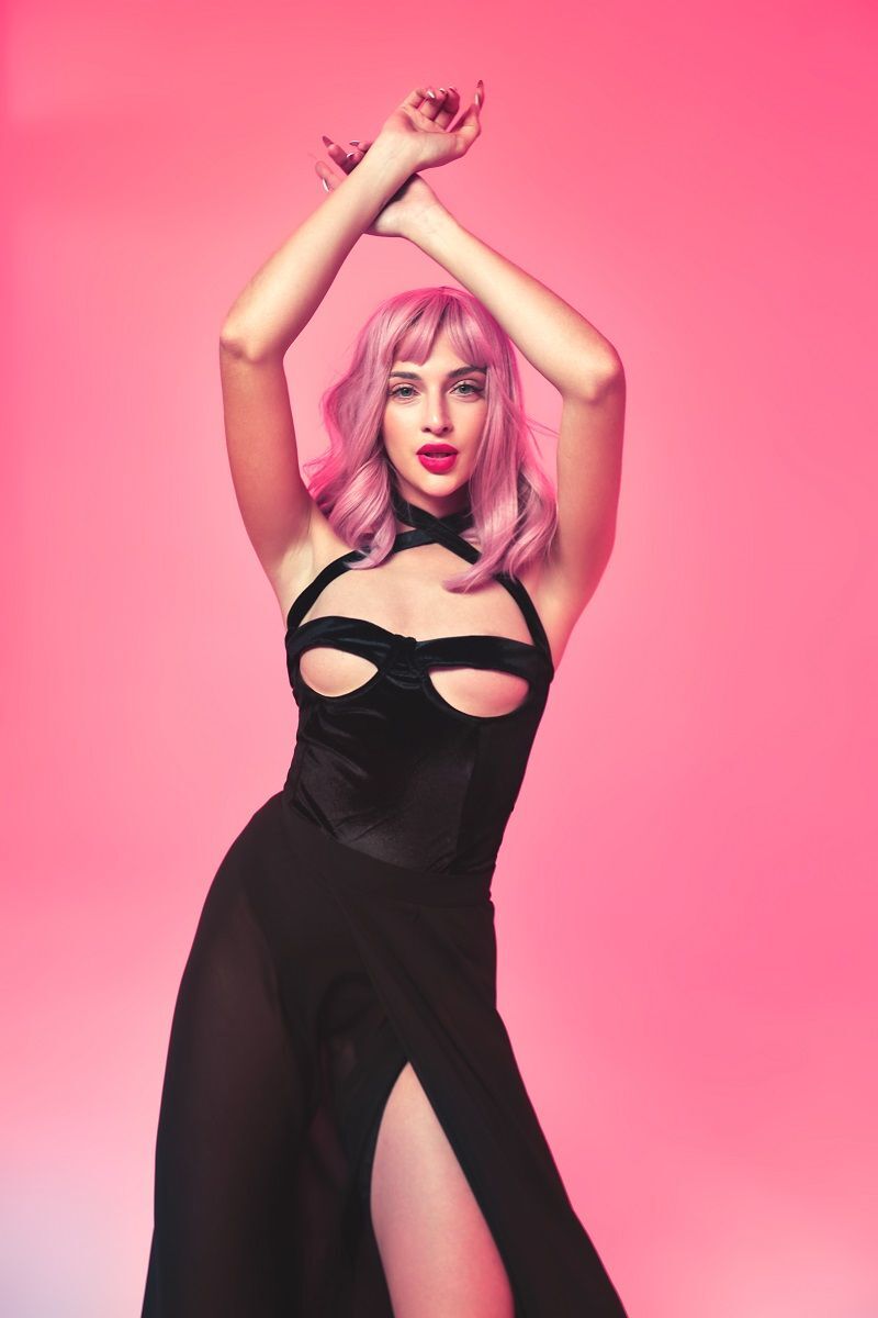 Комплект - боди и юбка. Боди из бархата выглядит привлекательно и дорого. Мягкий и приятный на ощупь. Хорошо держит форму, не садится и не деформируется. Шифоновая юбка - легкая, тонкая и полупрозрачная. Broadway - твоя роль в эротическом мьюзикле! В комплекте: боди, юбка.