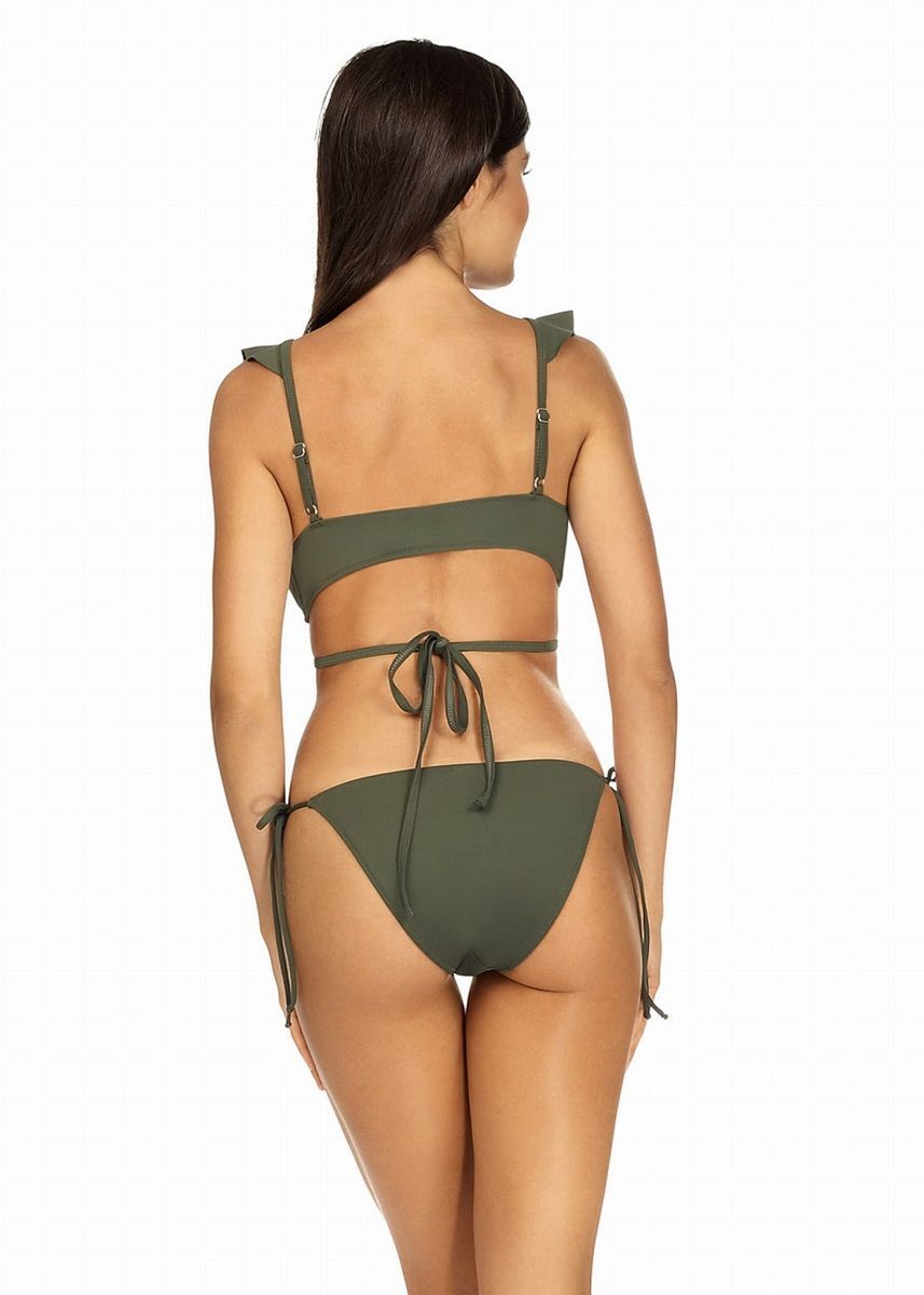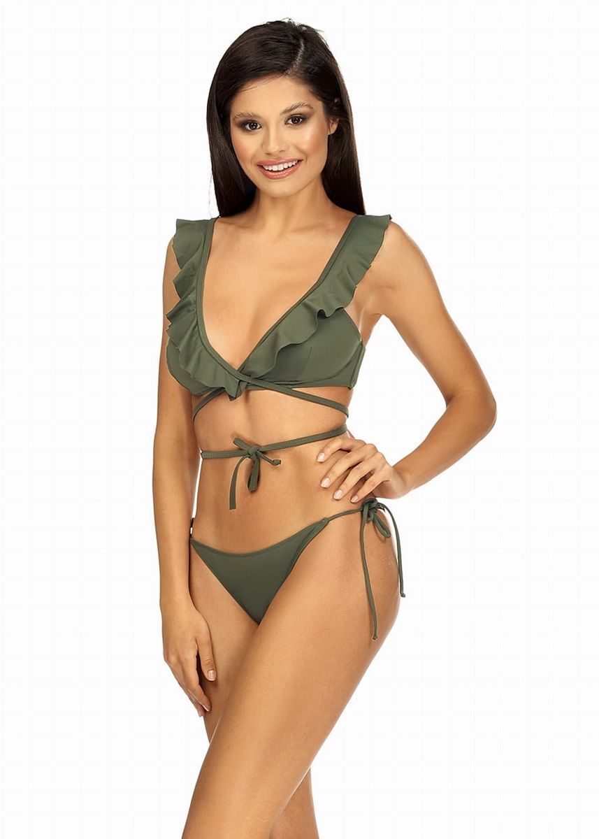 Купальник раздельный для девушки. Бюстгальтер мягкий, со съемными эластичными вкладышами, с дополнительными боковыми поддержками, бретели регулируются по длине, спереди между чашек тонкие завязки, которые можно завязать на спине или спереди под грудью. Трусики слип с заниженной линией талии на стрейч-подкладке, по бокам завязки. В комплекте: лиф, плавки. Внимание: европейские размеры! См. размерную сетку производителя.