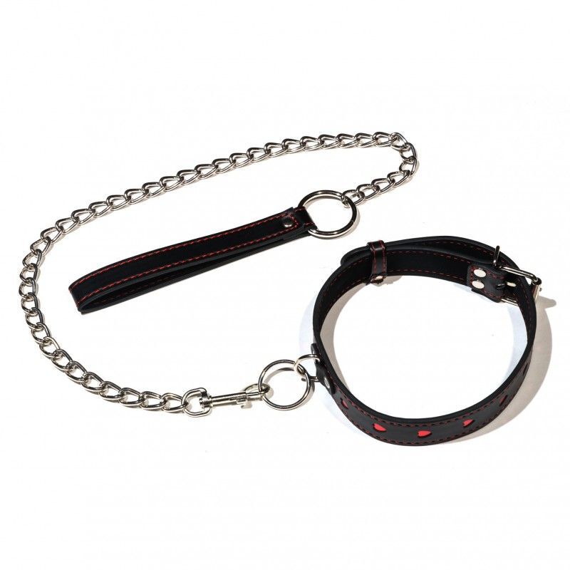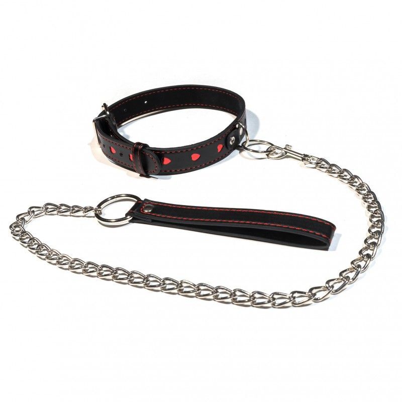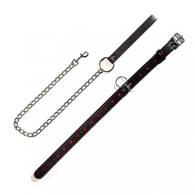 Достаточно надеть на вашего партнера ошейник и сразу все роли распределены. Останется лишь насладится новым волнующим сексуальным приключением! Ошейник с отстегивающимся поводком, состоящим из металлической цепочки и специальной петли для руки. Декорирован оригинальной аппликацией в виде горящих алых сердец и прошивкой из красных нитей. Аксессуар украсит изгибы шеи и станет не только признаком причастности к БДСМ , но и оригинальным украшением. Ширина ошейника - 2,5 см. Длина поводка - 77 см.