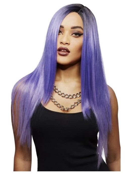 Парик с длинными прямыми волосами с боковым пробором.