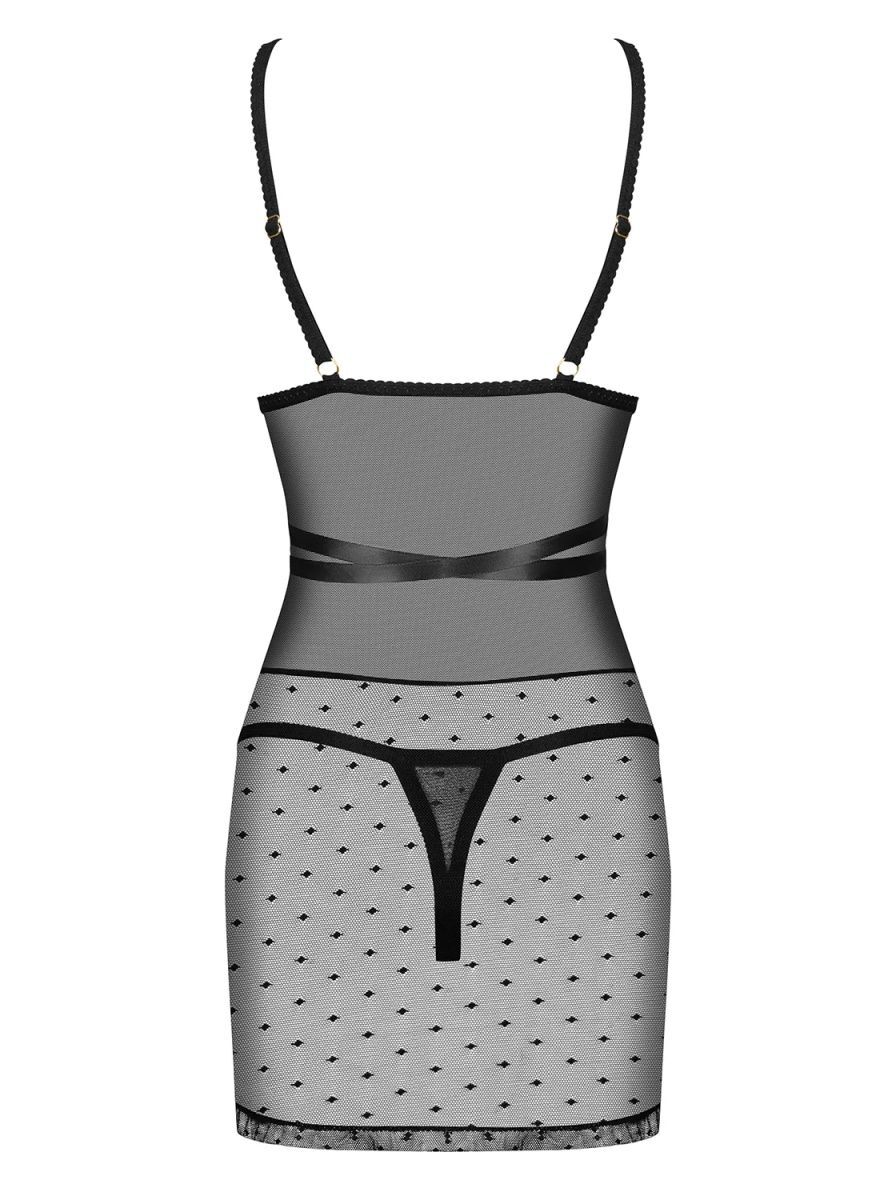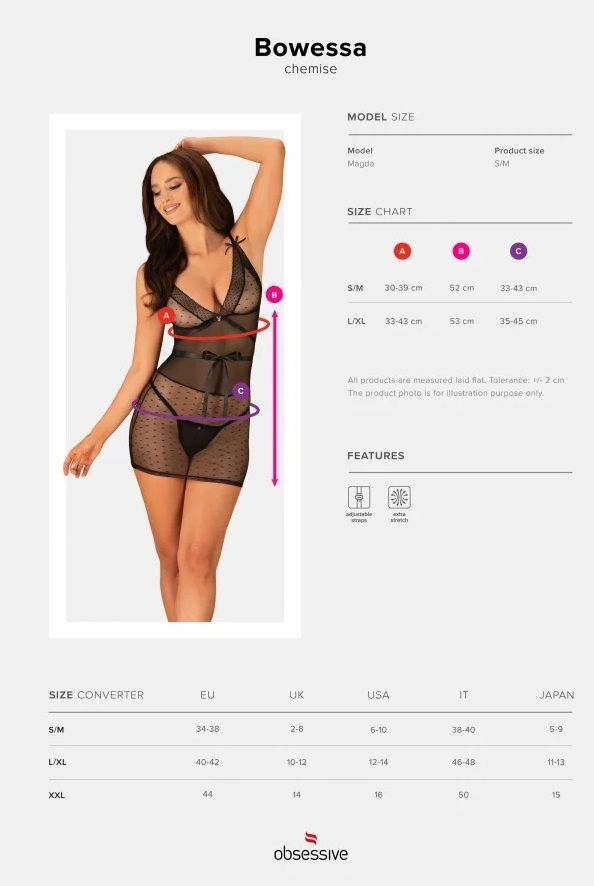 Соблазнительный сорочка Bowessa в комплекте со стрингами выполнена из полупрозрачного тюля в горошек. Лиф с мягкими чашками без косточек украшен очаровательным кулоном. Бретели регулируются по длине. Красивая атласная лента обвивается вокруг тела и завязывается бантом спереди. Изделие упаковано в плотную красивую коробку и отлично подойдет в качестве оригинального подарка. В комплекте: сорочка, трусики-стринги.