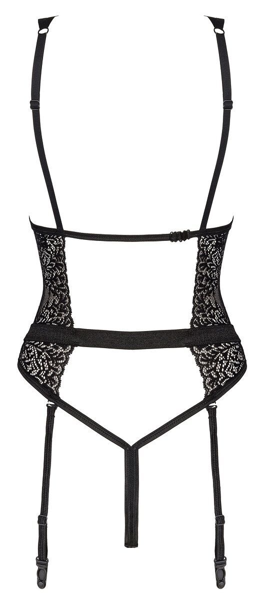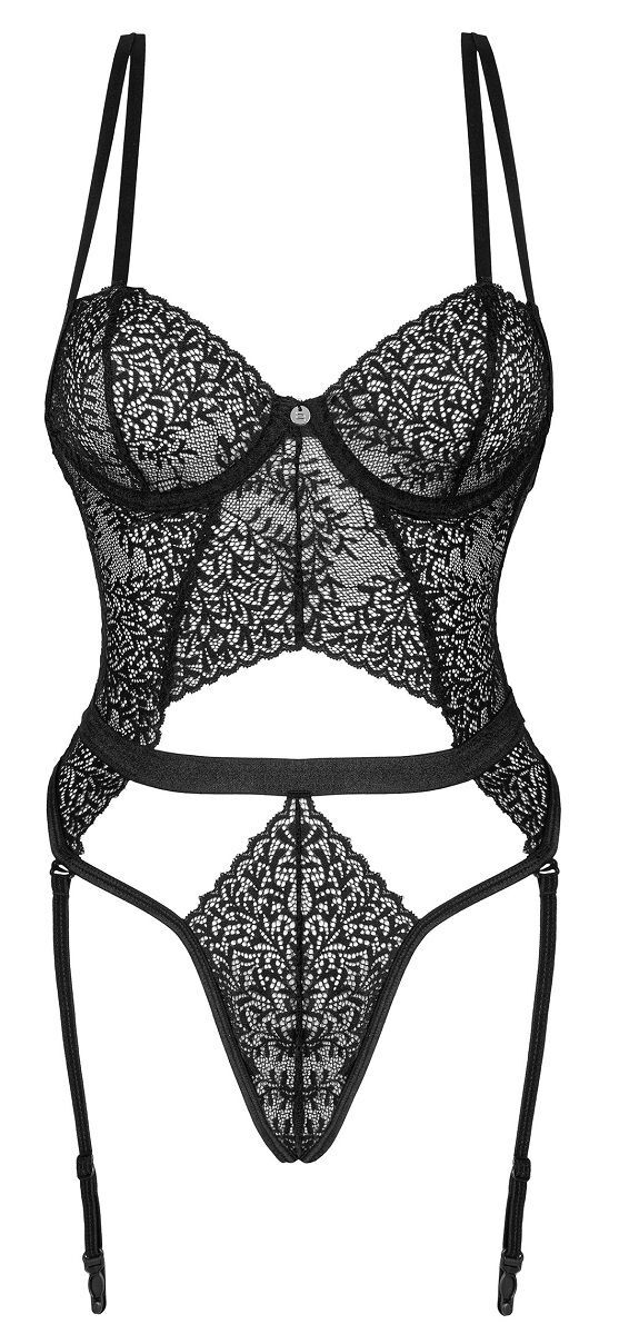 Боди-стринг из серии Yaskana сложного кроя создано из кружева, бюст мягкий, на косточках, тонкие бретели регулируются по длине, на спине застежка,на животе сексуальный вырез. Спинка открыта. Съемные регулируемые по длине пажи для чулок позволяют создавать разные образы.