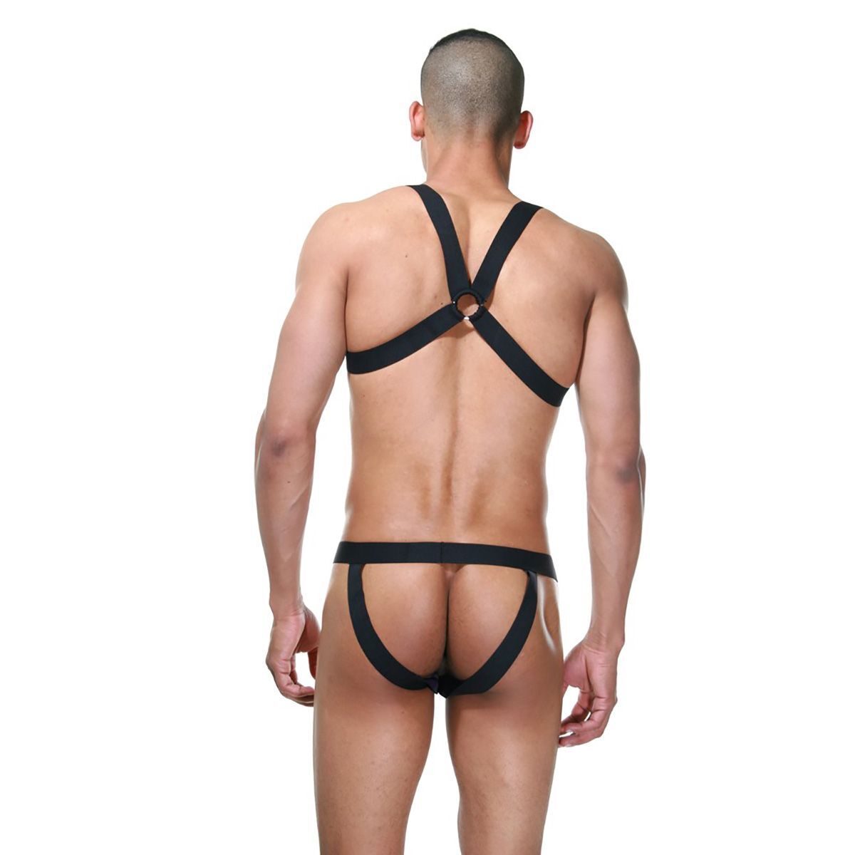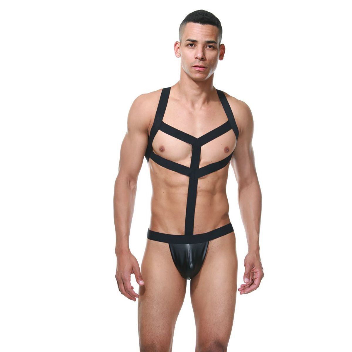 Мужское черное боди из гладкой, блестящей ткани с открытой грудью и открытыми ягодицами. Подобный комплект станет отличным дополнением к вашей игре и поводом начать экспериментировать.