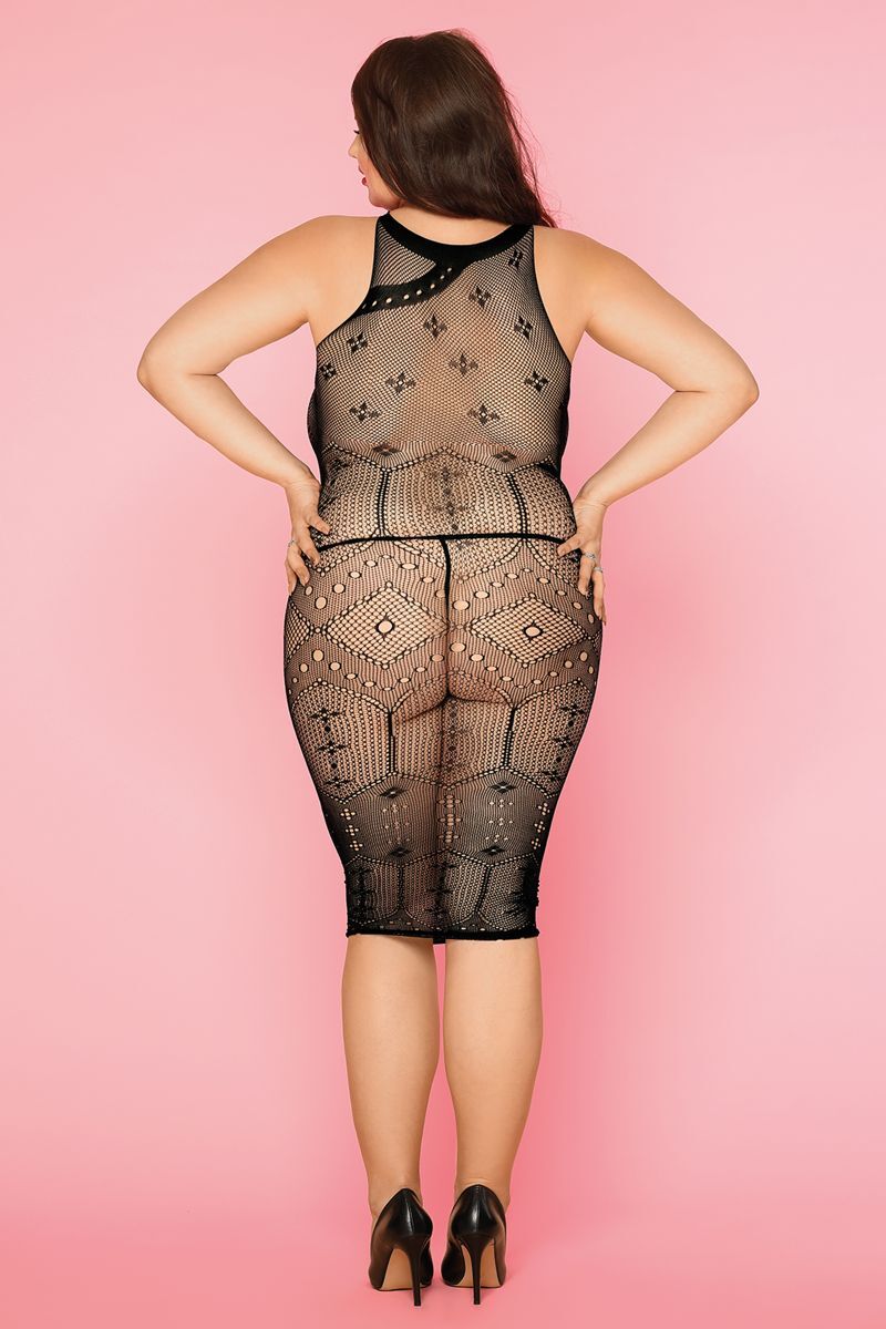 Эластичное бесшовное платье из сетки Spice от Candy Girl с абстрактным рисунком плетения приковывает внимание к декольте. Длина до середины колена подчеркивает соблазнительный изгиб лодыжек. В комплекте: платье, трусики-стринги.