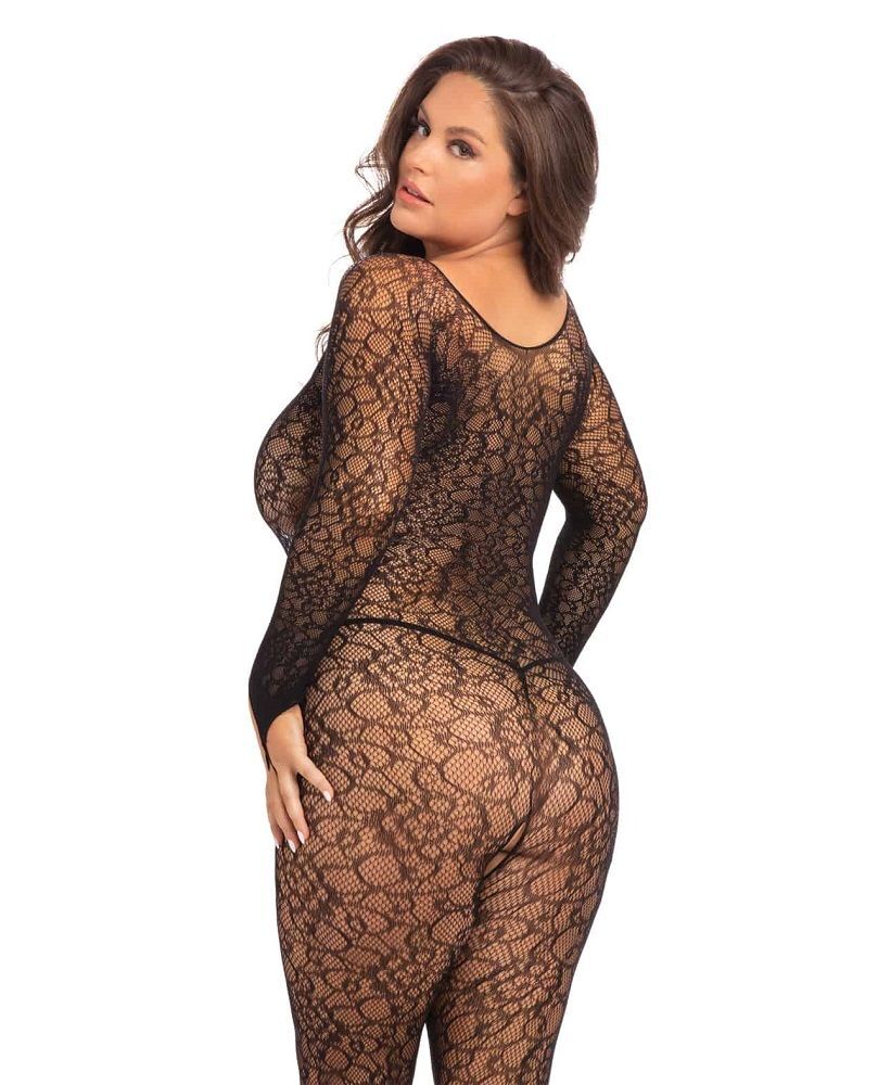 Комбинезон эротический с длинными рукавами и открытым доступом. Выполнен из мелкой сетки с цветочным орнаментом. Глубокий фантазийный вырез на завязках. Трусики не входят в комплект!