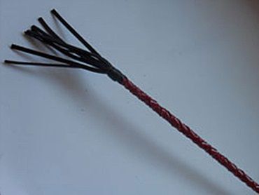 Стек длиной состоит из гибкой основы,оплетенной натуральной лаковой кожей красного цвета,наконечника и удобной рукояти с петлей для надевания на руку (темляк). Стек по воздействию схож с от толстыми розгами или ротанговыми тростями (прутьями). Длина кисточки - 20 см.