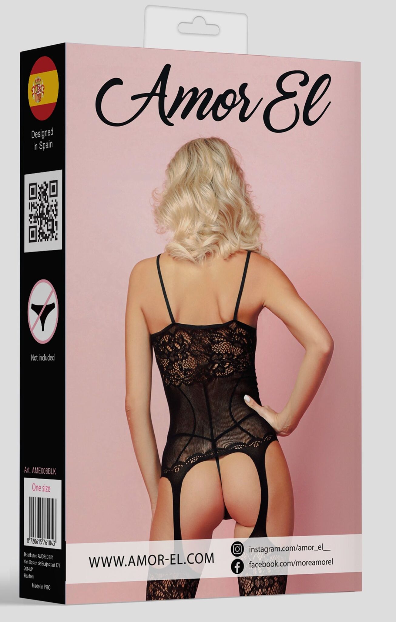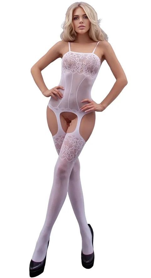Isabel - боди-комбинезон с имитацией чулок. Дизайн в виде сетки дополнен кружевным рисунком. Благодаря использованию большего количества нейлона, белье сохраняет очертания, не деформируется, растягивается и выгодно облегает фигуру. Даже после сильного растяжения, оно не деформируются, и всегда принимает исходную форму. Изделие не вызывает аллергию, не окрашивает. Уход и стирку следует производить в соответствии с инструкцией завода-изготовителя на этикетке. Трусики не входят в комплект!
